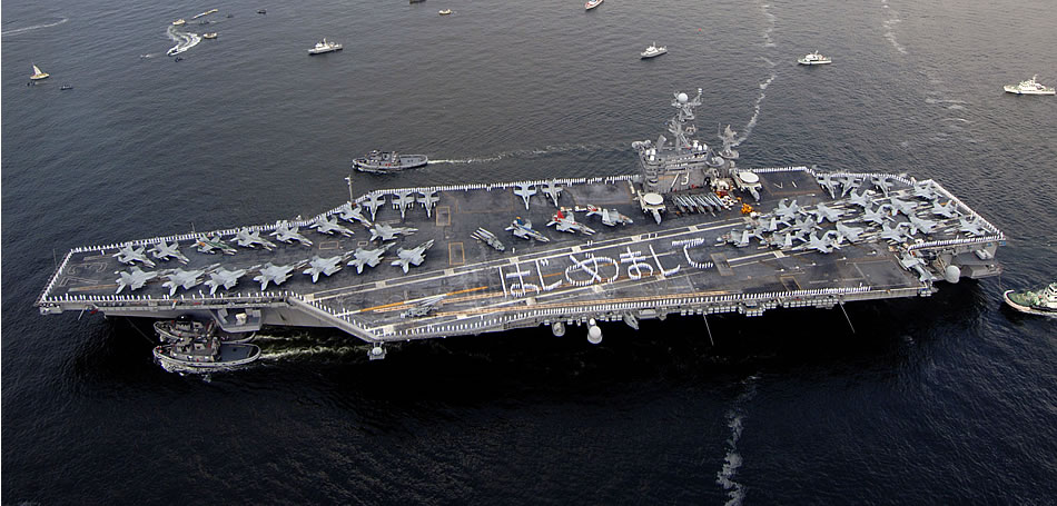 YOKOSUKA, Japan (Sept. 25, 2008) Sailors aboard the aircraft carrier USS George Washington (CVN 73) form the phrase "Hajimemashite," which means "Nice to meet you" in Japanese, as they arrive at Fleet Activities Yokosuka, Japan. George Washington and Carrier Air Wing 5 will be operating from Fleet Activities Yokosuka as the U.S. Navy's only forward-deployed aircraft carrier. U.S. Navy photo by Mass Communication Specialist 2nd Class Clifford L. H. Davis