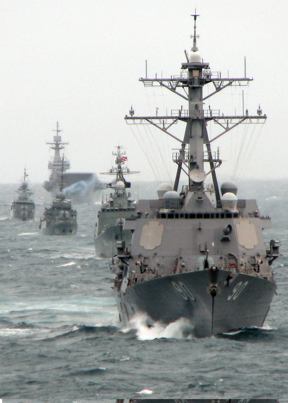 GULF OF THAILAND (July 13, 2009) The guided-missile destroyer USS Chafee (DDG 90) leads a formation of Royal Thai Navy ships including HTMS Naresuan (FFG 421), HTMS Khirrirat (FS 432), HTMS Makutrajakuman (FF 433) and HTMS Chakri Naruebet (CVH 911) during the at-sea phase of Cooperation Afloat Readiness and Training (CARAT) Thailand 2009. CARAT is a series of bilateral exercises held annually in Southeast Asia to strengthen relationships and enhance the operational readiness of the participating forces. (U.S. Navy photo by Lt. Ed Early/Released)