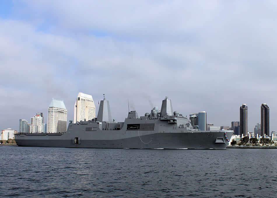 SAN DIEGO (Nov. 21, 2012)The San Antonio-class amphibious transport dock ship PCU Anchorage (LPD 23) arrives in its new homeport of San Diego. Anchorage, the second ship bearing the name, is schedule to have its commissioning ceremony in its namesake city of Anchorage, Alaska, May 2013. U.S. Navy photo by Senior Chief Mass Communication Specialist Robert Winkler