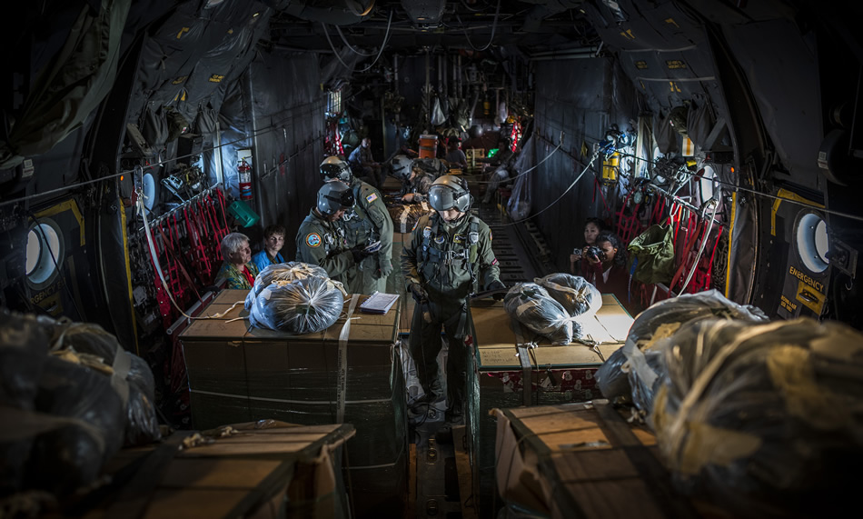 Loadmasters from the 36th Airlift Squadron, Yokota Air Base, Japan, prepare humanitarian aid bundles destined for remote islands within the Micronesian Islands Dec. 11, 2012, during the 61st anniversary of Operation Christmas Drop. Operation Christmas Drop is a non-profit organization powered by volunteers from Andersen Air Force Base and the local Guam community. Each year OCD provides aid to over 30,000 islanders in Chuuk, Palau, Yap, Marshall Islands and Commonwealth of the Northern Mariana Islands. This year is the 61st anniversary of OCD, making it the longest running humanitarian mission in the world. (U.S. Air Force photo by Tech. Sgt. Samuel Morse)