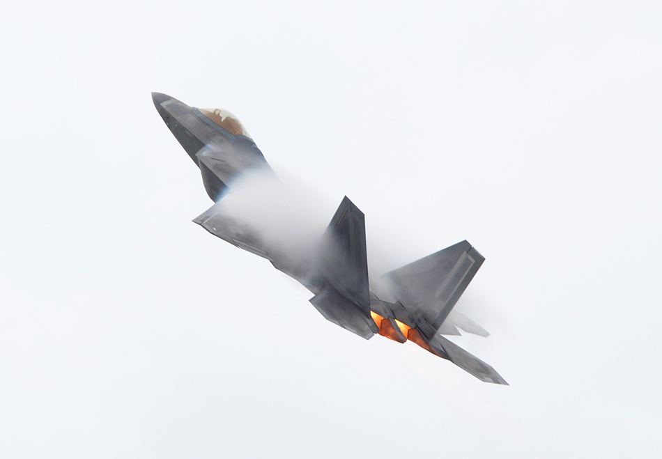 Col. Terry Scott takes off for a training mission in an F-22 Raptor May 9, 2014, at Joint Base Pearl Harbor-Hickam, Hawaii. The mission was Scott's 'fini-flight' a ceremonial final flight for Air Force pilots. Scott is retiring after 33 years of combined enlisted and commissioned service. (U.S. Air Force photo/Staff Sgt. Alexander Martinez)