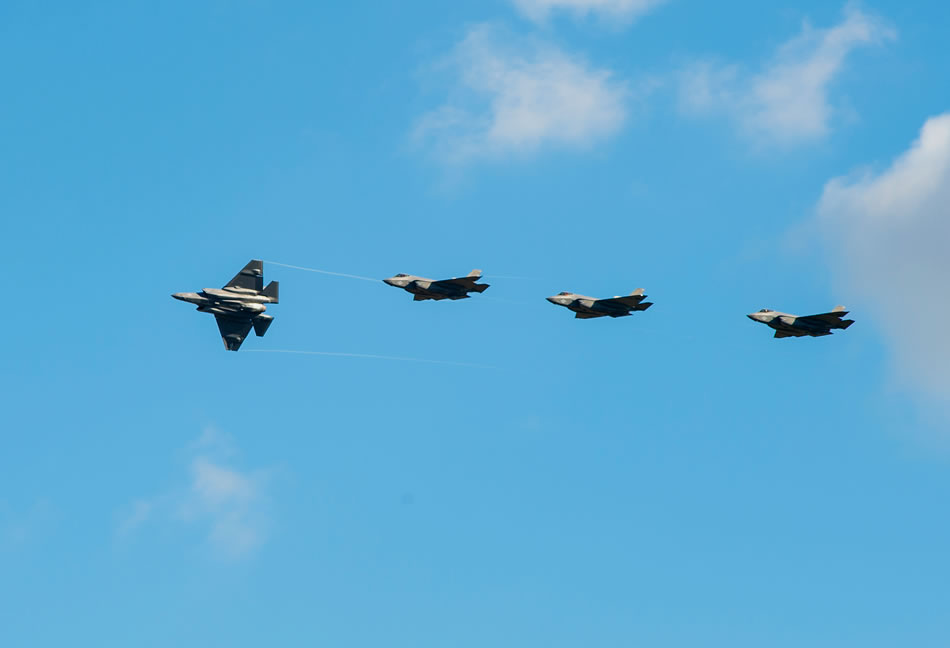 LEMOORE, Calif. (Jan. 25, 2016) Four F-35C Lightning II joint strike fighters fly in formation over Naval Air Station Lemoore, Calif. The F-35C will enhance the flexibility, power projection, and strike capabilities of carrier air wings and joint task forces. (U.S. Navy photo by Mass Communication Specialist 3rd Class Zachary Eshleman)