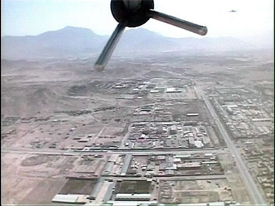 Shots from a UAV camera. While the UAV flies near Kabul, it has an unfortunate encounter with an airliner coming in for a landing.