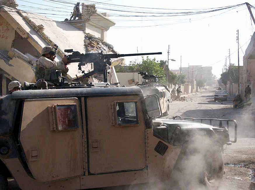 October 7, 2004 - A Soldier from 1st Battalion, 14th Infantry Regiment (Light), 25th Infantry Division, fires a 50-caliber machine gun while battling insurgents during house-to-house fighting in Samarra, Iraq.