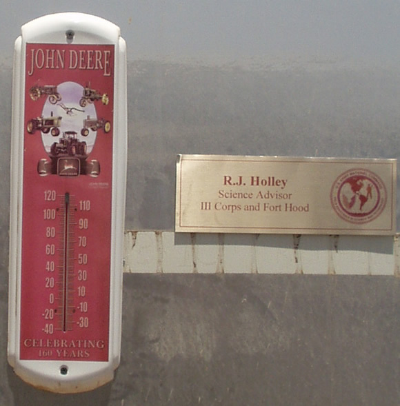 The temperature gauge on RJ Holley's trailer 29 June (he says he can use thepublicity)