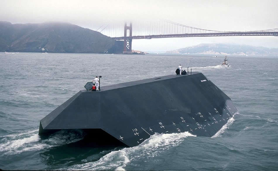 Sea Shadow (IX 529), at sea. Sea Shadow is used to test advanced hull forms and structures, automation for reduced manning, sea keeping and signature control.