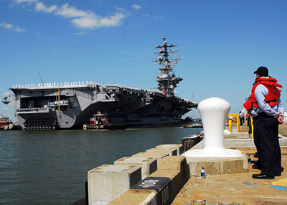 NORFOLK (May 23, 2007) - Sailors assigned to Nimitz-class aircraft carrier USS Dwight D. Eisenhower (CVN 69) return to Naval Station Norfolk after the longest deployment by a carrier strike group since 2003. The Eisenhower Carrier Strike Group (IKE CSG) deployed Oct. 3, 2006 to the 5th Fleet Area of Responsibility to support ongoing operations including efforts in Iraq, Afghanistan and Maritime Operations in the region. U.S. Navy photo by Mass Communication Specialist 2nd Class Nathan Laird