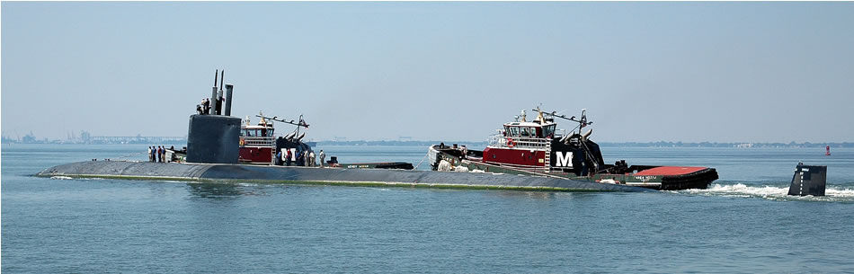 NORFOLK, Va. (Sept. 4, 2008) The Los Angeles class attack submarine USS Scranton (SSN 756) is towed into the Elizabeth River as it transits to Norfolk Naval Shipyard for protection from the upcoming Tropical Storm Hanna. U.S. Navy photo by Mass Communication Specialist 1st class Todd A. Schaffer
