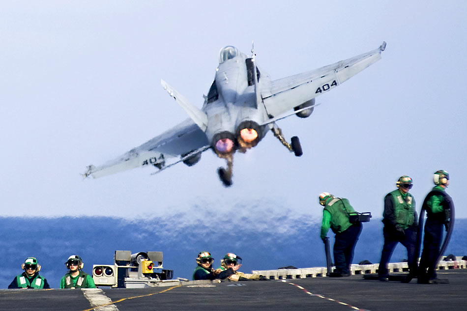 An F/A-18C Hornet launches from the aircraft carrier USS Carl Vinson in the Pacific Ocean, Jan. 8, 2011. The Carl Vinson and Carrier Air Wing 17 are deployed to the U.S. 7th Fleet area of responsibility. The hornet is assigned to Strike Fighter Squadron 25. U.S. Navy photo by Seaman Nicolas C. Lopez