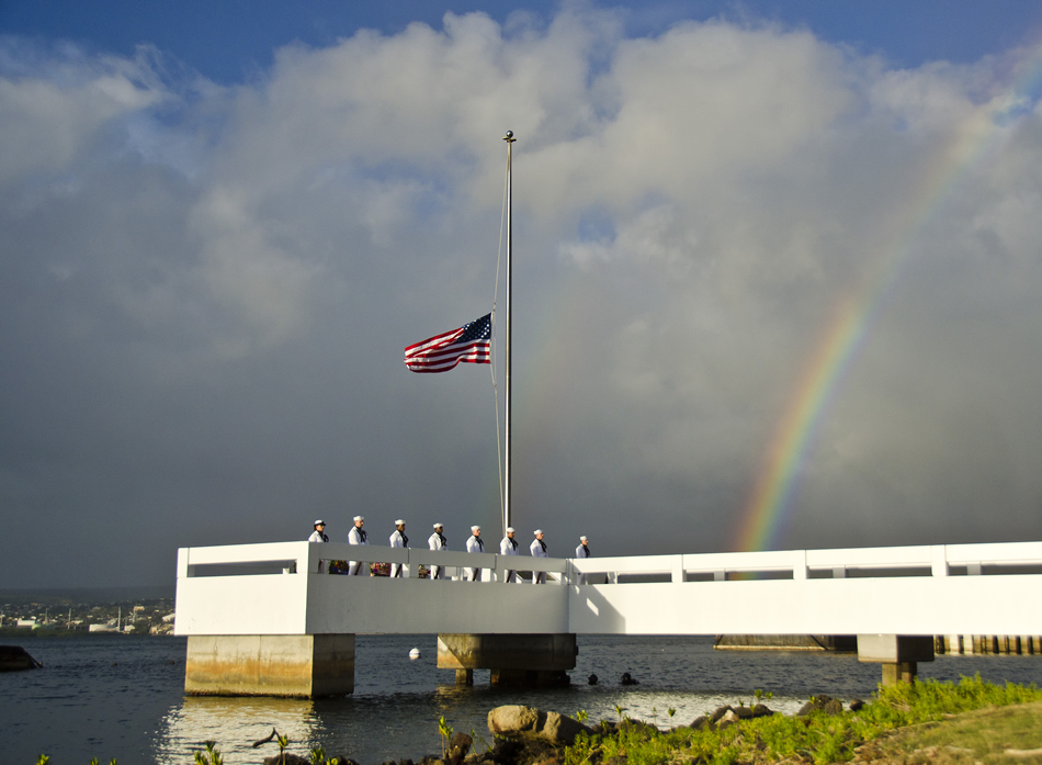 PEARL HARBOR (Dec. 6, 2011) Members of the Navy Region Hawaii Ceremonial Guard stand over National Park divers in the water during a burial service of Pearl Harbor survivor and USS Utah crewmember Lee Soucy (1919-2010) at the USS Utah Memorial on Ford Island. This year marks the 70th anniversary of the 1941 attacks on Pearl Harbor. (U.S. Navy photo by Mass Communication Specialist 2nd Class Daniel Barker)