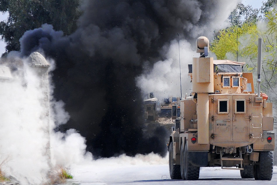 A U.S. Army explosive ordnance disposal unit safely detonates an improvised explosive device on the side of Route Crowbar in Khowst province, Afghanistan, March 24, 2012. The soldiers are assigned to the 25th Infantry Division's 4th Brigade Combat Team. U.S. Army photo by Spc. Eric-James Estrada