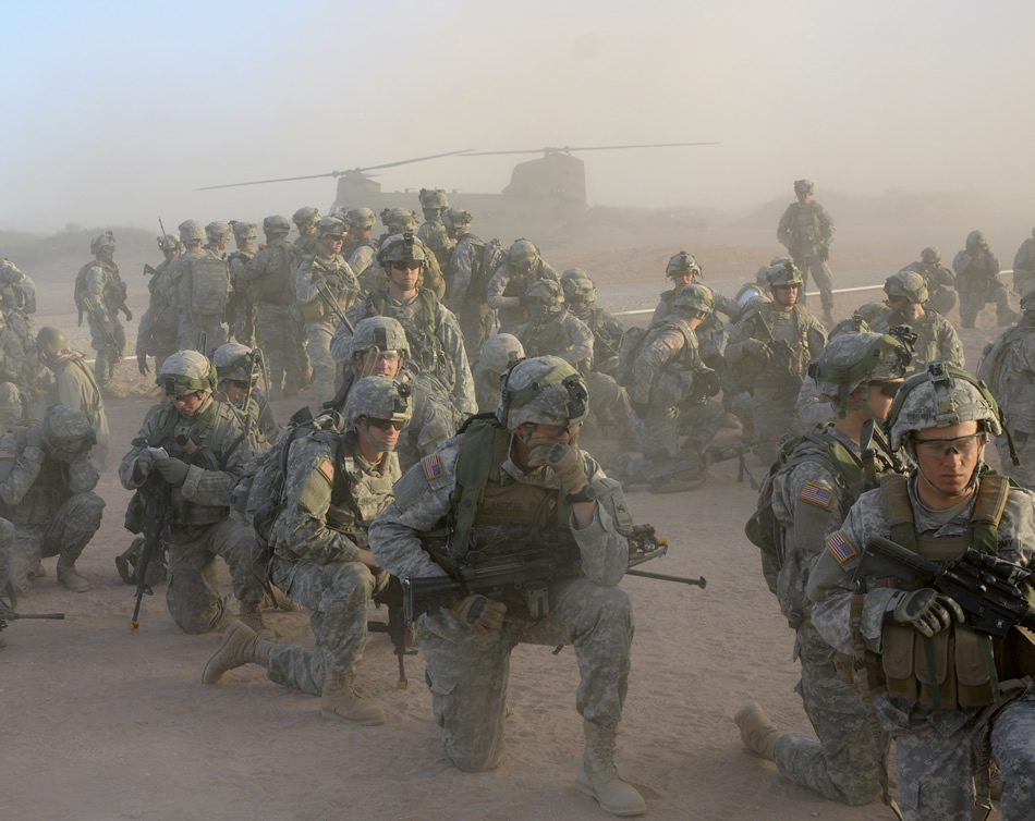 Soldiers with Bravo Company, 1-36th IN "Spartans" wait to load helicopters for an air assault mission, May 2, 2012.Photo by Staff Sgt. Joseph Wilbanks