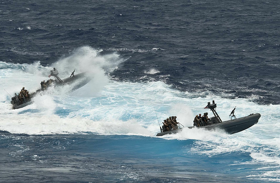 RED SEA (May 22, 2012) Sailors from the amphibious transport dock ship USS New York (LPD 21) prepare to conduct visit, board, search and seizure exercises during Exercise Eager Lion 12. Eager Lion is a multinational exercise involving 19 nations from five different continents and more than 11,000 participants intended to strengthen military-to-military relationships through a joint, whole-of-government approach to meet current and future complex national security challenges. (U.S. Navy photo by Mass Communication Specialist 3rd Ian Carver)