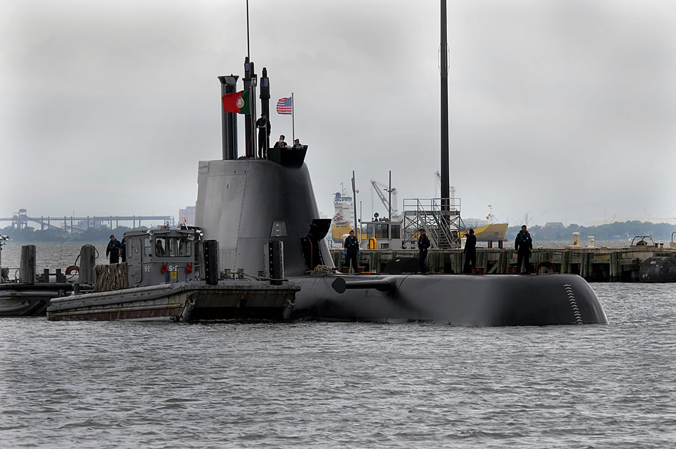 NORFOLK (June 14, 2012) The Portuguese navy submarine NRP Tridente (S 160) arrives at Naval Station Norfolk. Tridente is scheduled to participate in the multinational fleet training exercise War of 1812 June 19-29. (U.S. Navy Photo by Mass Communication Specialist 3rd Class Karen Blankenship)