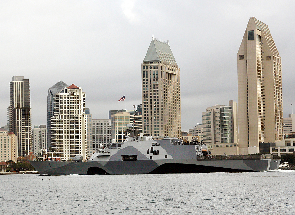 SAN DIEGO (Feb. 21, 2013) The littoral combat ship USS Freedom (LCS 1) departs San Diego on its way to conduct sea trials following a month-long dry dock availability. Freedom, the lead ship of the Freedom variant of LCS, is expected to deploy to southeast Asia this spring. (U.S. Navy photo by Command Master Chief Chris Kotz)