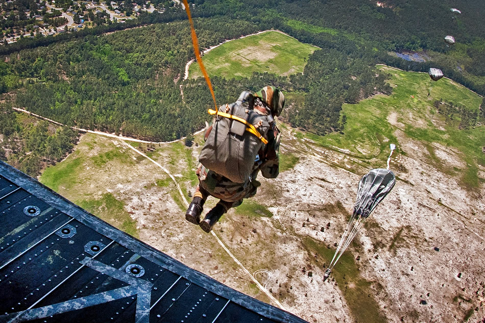 An Indian paratrooper exits a CH-47 Chinook helicopter during the Yudh Abhyas bilateral training exercise on Fort Bragg, N.C., May 15, 2013. U.S. Army photo by Sgt. Michael J. MacLeod