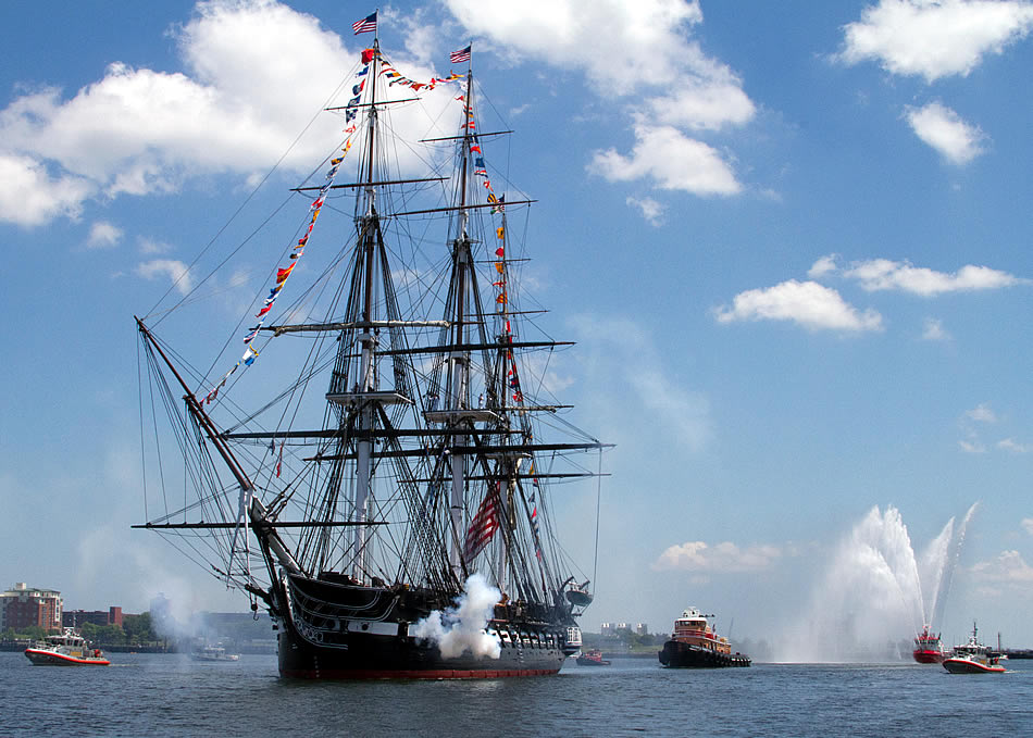 BOSTON (July 4, 2013)USS Constitution fires a 21-gun salute in honor of America's 237th birthday during the ship's annual Fourth of July turnaround cruise. More than 500 guests went underway with Old Ironsides for a three-hour tour of Boston Harbor in celebration of Independence Day. U.S. Navy photo by Sonar Technician (Submarine) 2nd Class Thomas Rooney