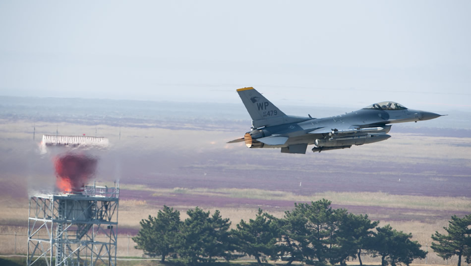 An F-16 Fighting Falcon takes off for a Max Thunder sortie Nov. 5, 2013, at Kunsan Air Base, South Korea. Airmen from the U.S. Air Force, Marine Corps and the South Korean air force continued their participation in scenarios and planning cycles in a robust exercise setting that simulated combined operations against a hostile force. This combined large-force employment exercise includes 8th Fighter Wing F-16 Fighting Falcons, 51st Fighter Wing A-10 Thunderbolts II and F-16s, Marine Air Group 12 F-18 Hornets, AV-8B Harriers II, 35th Air Defense Artillery Brigade, 18th Wing E-3B Sentries, numerous South Korean air force aircraft and accompanying support personnel. The F-16 is assigned to the 80th Fighter Squadron.