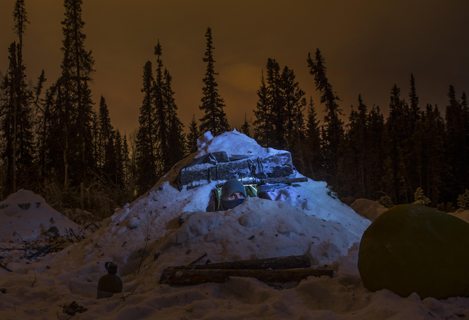 Airman 1st Class Ray Simon looks out of his thermalized A-frame tent during arctic survival school Jan. 15, 2015, near Eielson Air Force Base, Alaska. The thermalized A-frame is designed to keep survivors warm and dry in arctic environments. Simon is a 3rd Maintenance Support Squadron crew chief. The story about Arctic Survival School will be published in the February issue of Airman magazine. To find out more information or to read other Airman stories, visit http://airman.dodlive.mil. (U.S. Air Force photo/Staff Sgt. Vernon Young Jr.)
