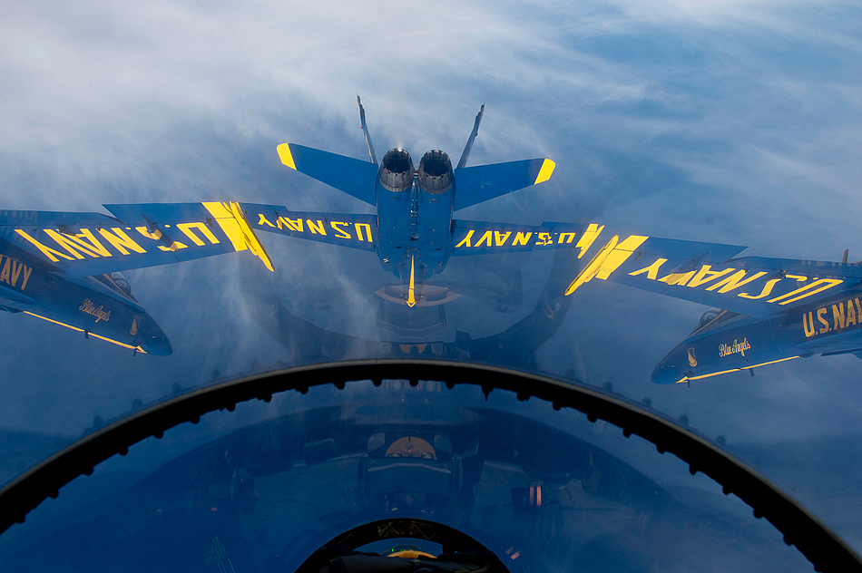 EL CENTRO, Calif. (Feb. 21, 2015) U.S. Navy flight demonstration squadron, the Blue Angels, Diamond pilots fly in formation over Naval Air Facility El Centro during a practice demonstration. The Blue Angels are conducting winter training where pilots must complete 120 practice flights before kicking off the 2015 air show season. (U.S. Navy photo by Mass Communication Specialist 2nd Class Andrea Perez)
