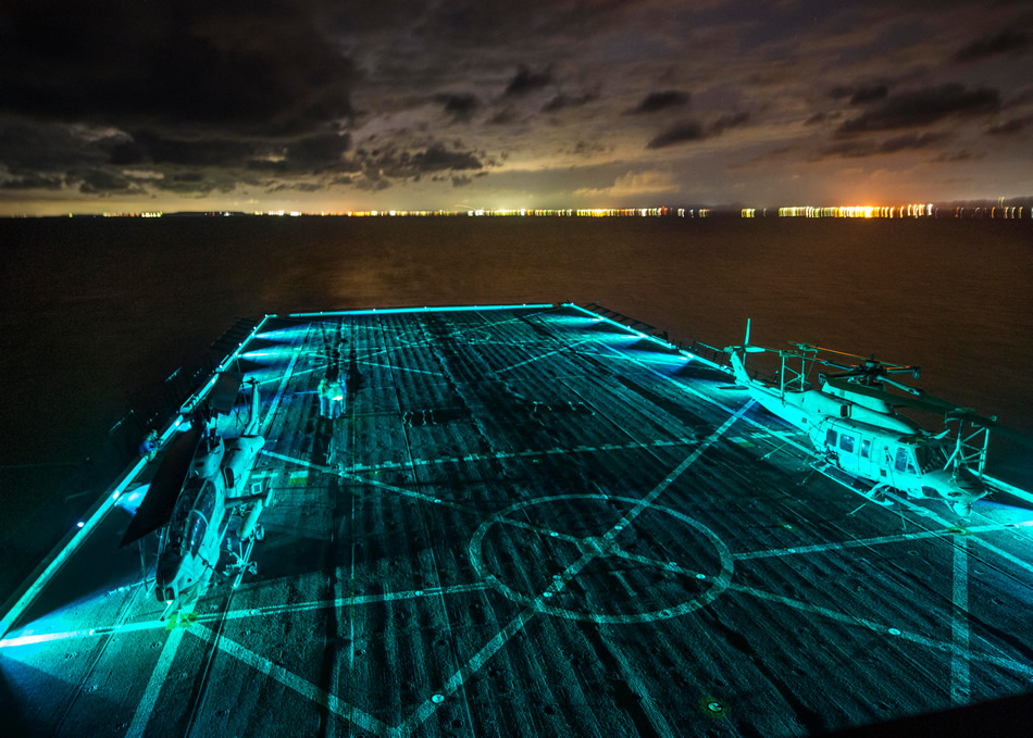 EAST CHINA SEA (March 13, 2015) Sailors participate in flight operations aboard the San Antonio-class amphibious transport dock ship USS Green Bay (LPD 20). Green Bay, part of the Bonhomme Richard Amphibious Ready Group, is conducting a certification exercise. (U.S. Navy photo by Mass Communication Specialist 3rd Class Edward Guttierrez III)