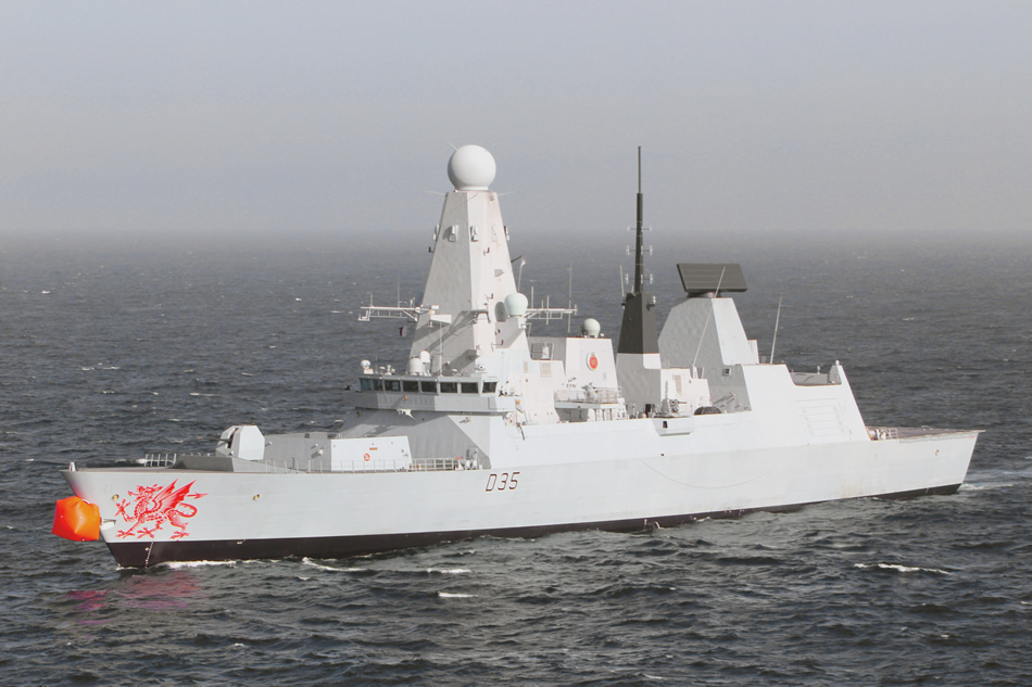 HMS Dragon proudly wear her Red Nose in the Atlantic.The Type 45 Destroyer was supporting Comic Relief's Red Nose Day (Friday 13 March,2015) with a great big red nose attached to their prows - the very front of the ship. (Royal Navy Photo)
