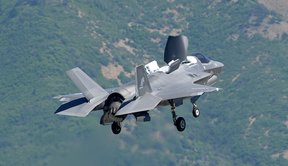 A Marine Corps F-35B Lightning II takes off at Hill Air Force Base, Utah, June 18, 2015. The aircraft underwent a functional check flight following modifications at the Ogden Air Logistics Complex. (U.S. Air Force photo/Alex R. Lloyd)