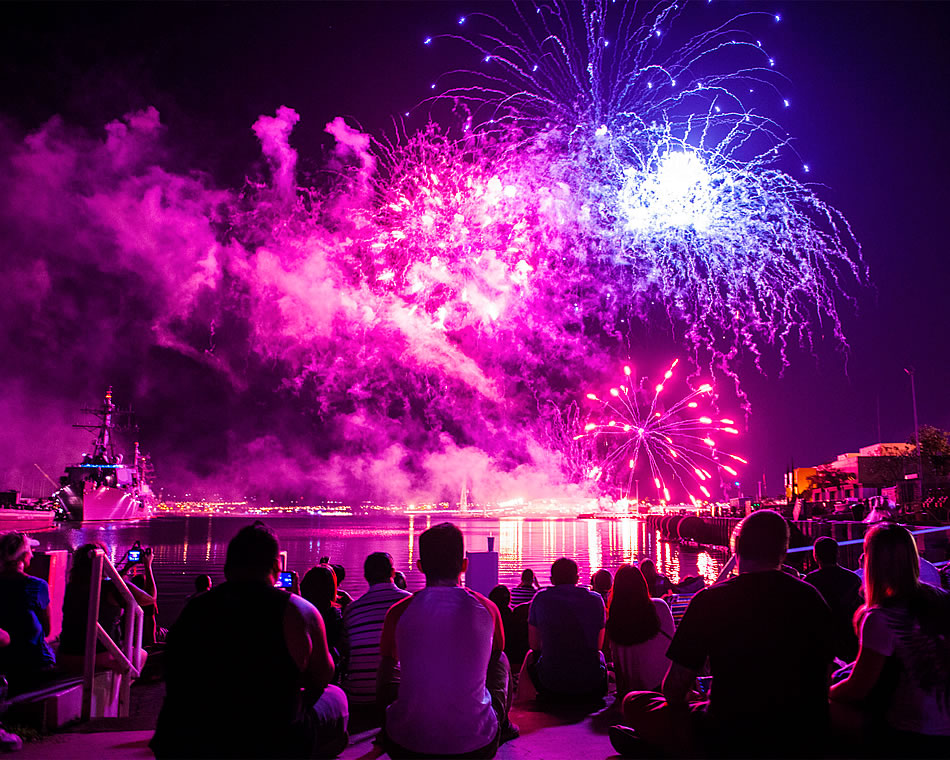 PEARL HARBOR (July 4, 2015) Military members and their families watch a fireworks display during a Fourth of July celebration at Joint Base Pearl Harbor-Hickam. (U.S. Navy photo by Mass Communication Specialist 2nd Class Jeff Troutman)