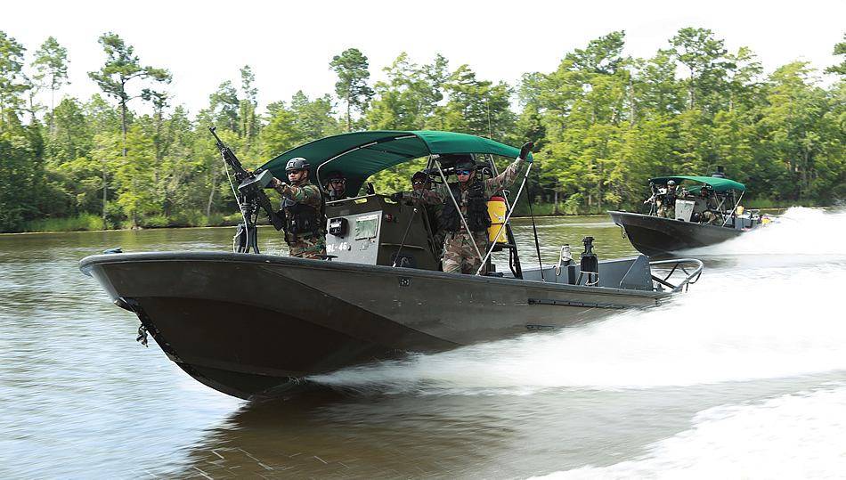 STENNIS SPACE CENTER, Miss. (July 8, 2015) International students take part in a training evolution as part of the Patrol Craft Officer Riverine course at Naval Small Craft Instruction and Technical Training School (NAVSCIATTS). The course provides students the specialized training necessary to safely and effectively plan and execute Patrol Craft security operations in riverine and littoral environments supporting interdiction, counter-terrorism and counter-narcotics operations. NAVSCIATTS is a Department of the Navy schoolhouse that operates under the United States Special Operations Command, which trains and educates Partner Nation Security Forces on a wide range of topics including small craft strategy, operations, communications, weapons, maintenance and instructor development. (U.S. Navy photo by Senior Chief Mass Communication Specialist Gary Ward)