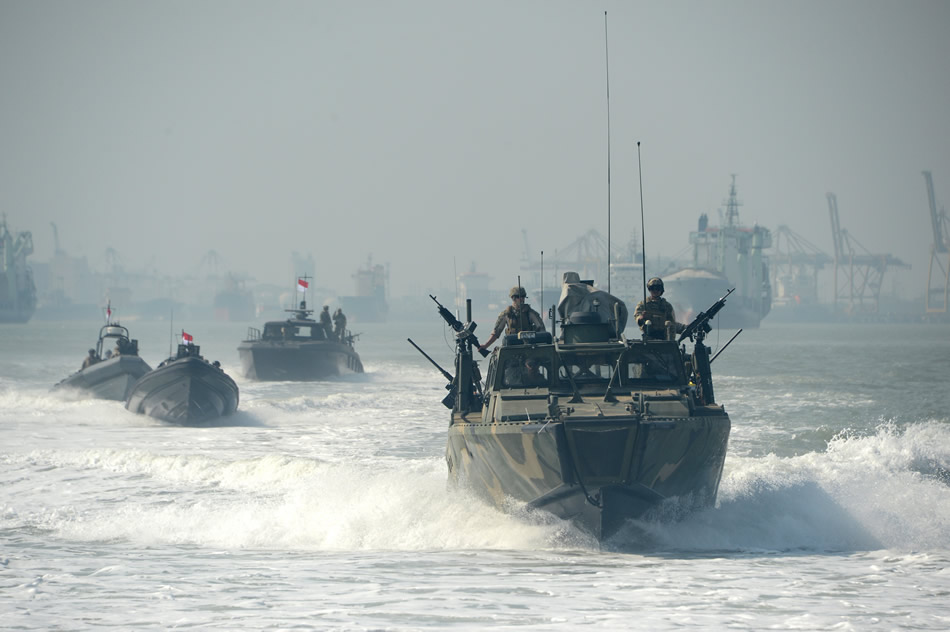 SURABAYA, Indonesia (Aug. 5, 2015) U.S. Navy Sailors assigned to Coastal Riverine Squadron (CRS) 3 and Indonesian Kopaska naval special forces members practice patrol formations during Cooperation Afloat Readiness and Training (CARAT) Indonesia 2015. In its 21st year, CARAT is an annual, bilateral exercise series with the U.S. Navy, U.S. Marine Corps and the armed forces of nine partner nations including, Bangladesh, Brunei, Cambodia, Indonesia, Malaysia, the Philippines, Singapore, Thailand and Timor-Leste. U.S. Navy photo by Mass Communication Specialist 1st Class Joshua Scott