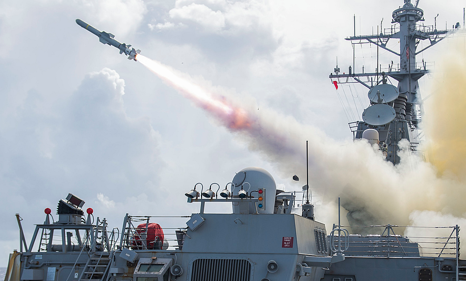 WATERS NEAR GUAM (Aug. 12, 2015) The Arleigh Burke-class guided-missile destroyer USS Fitzgerald (DDG 62) fires a Harpoon missile during a live-fire drill. Fitzgerald is on patrol in the U.S. 7th Fleet area of responsibility supporting security and stability in the Indo-Asia-Pacific region. (U.S. Navy photo by Mass Communication Specialist 3rd Class Patrick Dionne)
