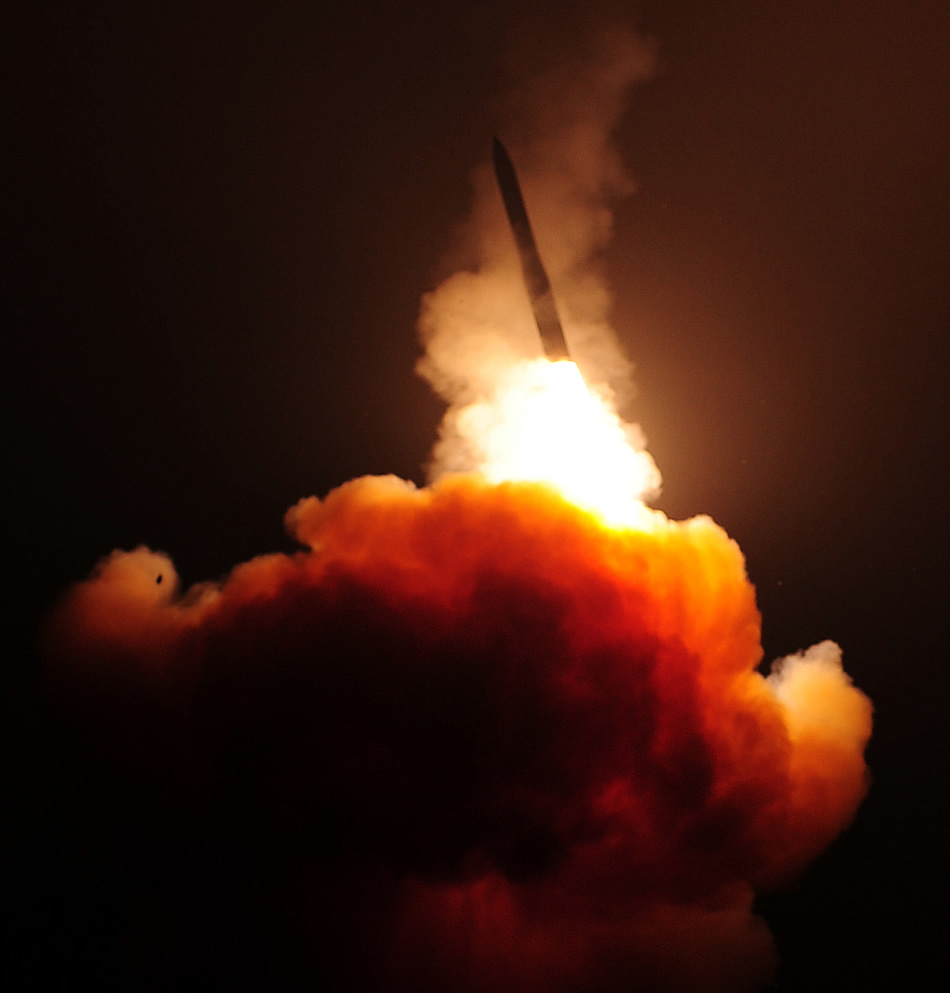 An unarmed LGM-30G Minuteman III intercontinental ballistic missile launches Aug. 19, 2015, at Vandenberg Air Force Base, Calif. The missile was randomly selected from Minot AFB, N.D. as a part of the system's operational test and evaluation program, which provides valuable data to evaluators and validates the reliability of the ICBM fleet. (U.S. Air Force photo/Joe Davila)