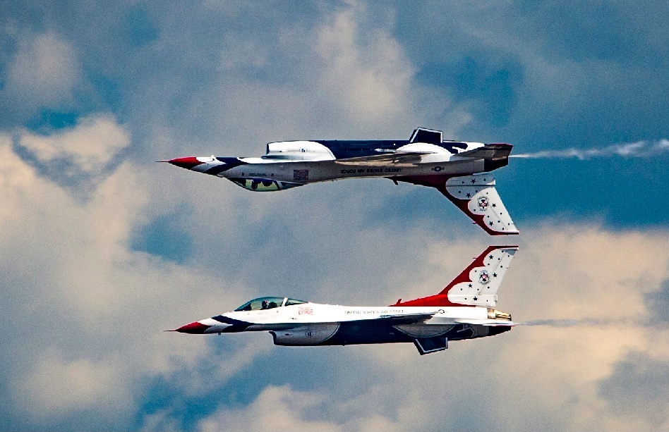 The U.S. Air Force Thunderbirds perform during the rehearsal day prior to the 2015 Joint Base Andrews Air Show at Joint Base Andrews, Md., Sept. 18, 2015. The Thunderbirds were headlined performers for the air show Sept. 19, 2015. (U.S. Air Force photo/Airman 1st Class Ryan J. Sonnier)