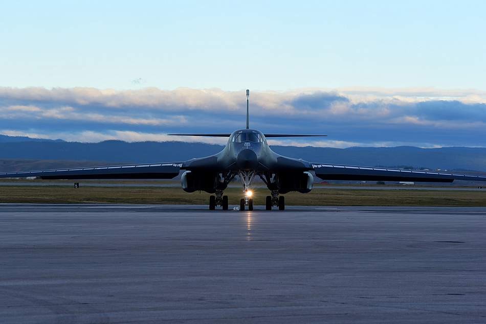 A B-1 Lancer prepares for takeoff at Ellsworth Air Force Base, S.D., Sept. 18, 2015. Ellsworth aircraft began conducting training missions in the Powder River Training Complex, allowing for an 85 percent increase in local flight training, ensuring more efficient use of resources. (U.S. Air Force photo/Airman 1st Class James L. Miller)