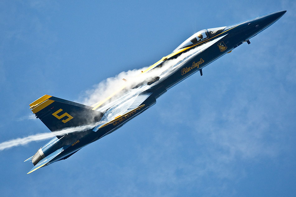 KANEOHE BAY, Hawaii (Oct. 18, 2015) Lt. Cmdr. Mark Tedrow, pilot number five with the U.S. Navy Flight Demonstration Squadron, the Blue Angels, performs aerial acrobatics during the 2015 Kaneohe Bay Air Show and Open House aboard Marine Corps Base Hawaii, Oct. 18, 2015. This year's theme for the air show was "Joining Forces with the Community," which hosted an array of acrobatic aerial performances by civilian performers, and military drills and demonstrations by the U.S. Navy, Marine Corps, Army, Air Force and Coast Guard. U.S. Marine Corps photo by Cpl. Brittney Vito
