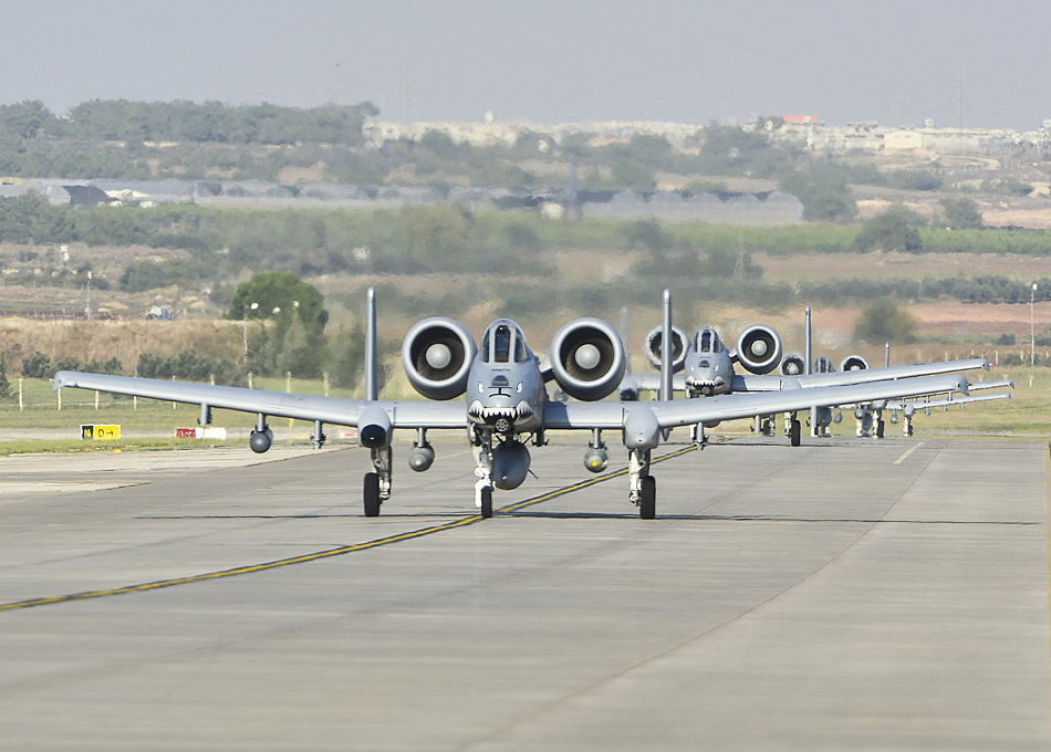 12 A-10C Thunderbolt IIs deployed to Incirlik, Turkey AB in support of Operation Inherent Resolve. The aircraft are deployed to Incirlik AB in an effort to enhance the international Coalition against ISIL. (U.S. Air Force photo by Airman 1st Class Cory W. Bush)