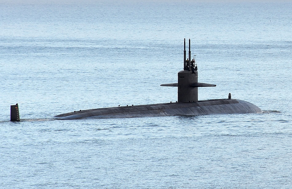 SAN DIEGO (Oct. 21, 2015) The Los Angeles-class fast-attack submarine USS Albuquerque (SSN 706) departs San Diego for the final time. Albuquerque held an inactivation ceremony Oct. 16 at Naval Base Point Loma, marking the submarine's final public event celebrating more than 32 years of naval service. Albuquerque is en route to Puget Sound Naval Shipyard in Bremerton, Wash., to commence its inactivation process and eventual decommissioning. (U.S. Navy photo by Mass Communication Specialist 2nd Class Kyle Carlstrom)