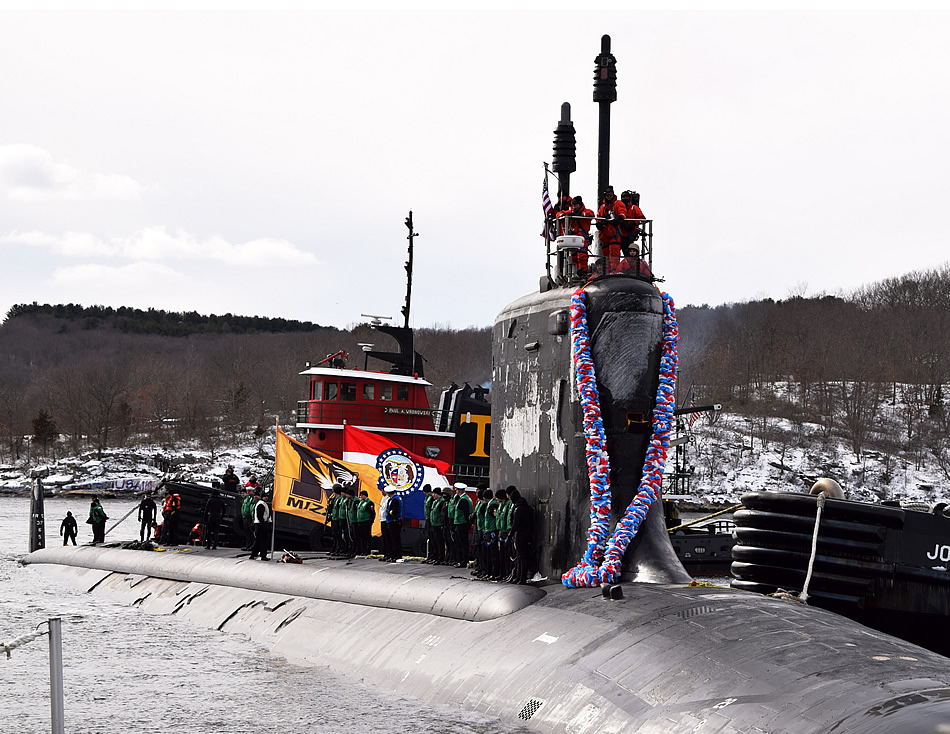 GROTON, Conn. (Feb. 12, 2015) The Virginia-class, nuclear powered, fast-attack submarine USS Missouri (SSN 780) returns to its homeport at Naval Submarine Base New London (SUBASE) from a regularly scheduled deployment. (U.S. Navy Photo by Lt. j.g. Daniel Mongiove)