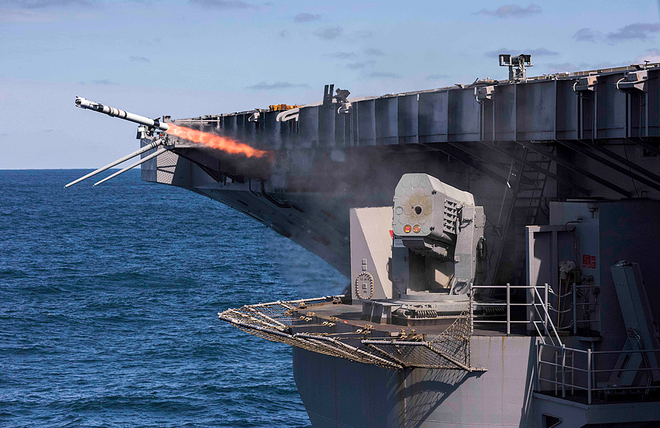 ATLANTIC OCEAN (March 3, 2016) A rolling-airframe missile (RAM) fires from the aircraft carrier USS Dwight D. Eisenhower (CVN 69) during a live-fire exercise. Dwight D. Eisenhower is underway for a Mobile Training Team (MTT) inspection. (U.S. Navy photo by Mass Communication Specialist 3rd Class R. U. Kledzik)