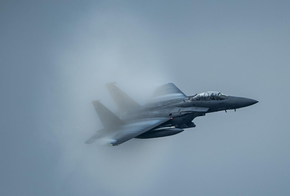 An F-15E Strike Eagle flies during a training exercise March 4, 2016, at Moody Air Force Base, Ga. During the training, the aircraft conducted tactical air and ground maneuvers, as well as weapons training. (U.S. Air Force photo/Airman 1st Class Lauren M. Johnson)