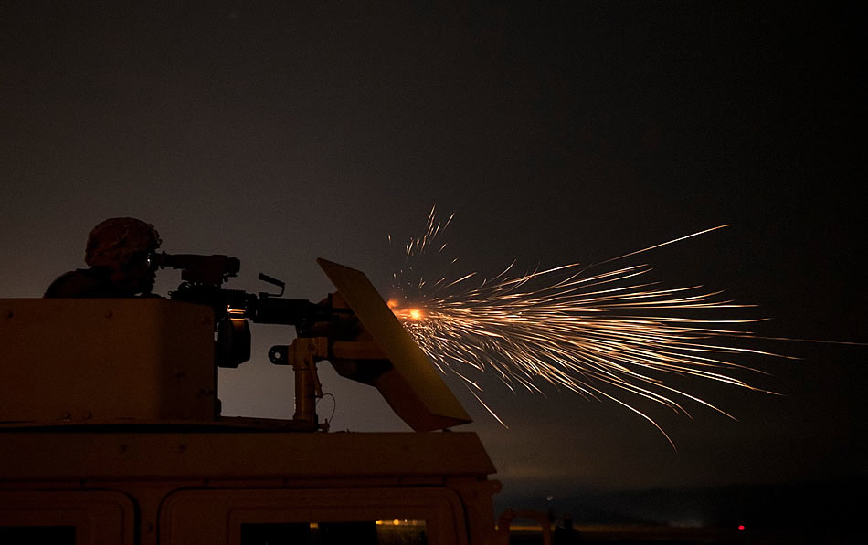 A U.S. Army Reserve military police Soldier, assigned to 11th Military Police Brigade, 200th Military Police Command, fires an M249 squad automatic weapon during night fire qualification at Fort Hunter-Liggett, California, May 4, 2016. U.S. Army photo by Master Sgt. Michel Sauret