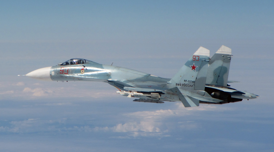 Russian Su-27 Flanker intercepted by the Royal Air Force within NATO's area of interest near Estonia on 17 May 16. RAF © MOD Crown Copyright 2016.