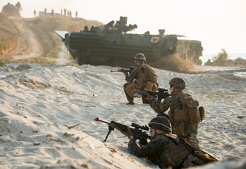 ODESSA, Ukraine (July 27, 2016) U.S. Marines assigned to the 22nd Marine Expeditionary Unit conduct an amphibious landing operation during Sea Breeze 2016 in Odessa, Ukraine. Sea Breeze is an air, land and maritime exercise designed to improve maritime safety, security and stability in the Black Sea. (U.S. Navy photo by Mass Communication Specialist 1st Class Justin Stumberg)
