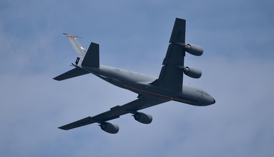 A KC-135 Stratotanker from the New Jersey Air National Guard's 108th Wing flies over Joint Base McGuire-Dix-Lakehurst, N.J., Aug. 31, 2016. The KC-135 celebrated its 60th anniversary, having made its first flight on Aug. 31, 1956. (U.S. Air National Guard photo/Tech. Sgt. Matt Hecht)
