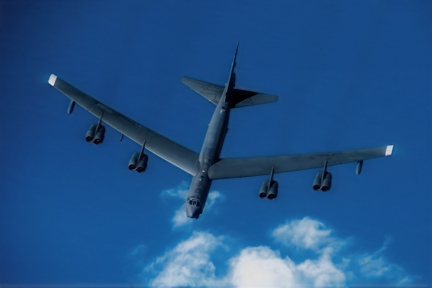 A U.S. Air Force B-52 Stratofortress bomber assigned to the 2nd Bomb Wing, navigates in the U.S. Southern Command area of responsibility, Oct. 15, 2025. Bomber Attack Demonstrations contributed to the collective defense of the Western Hemisphere and demonstrate the U.S. commitment to the safety and security of the region. (U.S. Air Force photo by Senior Airman Zachary Foster)